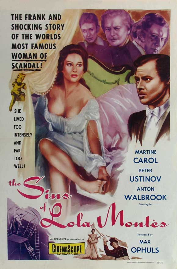 "Κυρίες και Κύριοι, σας παρουσιάζουμε την Λόλα Μοντές, την πιο σκανδαλώδη γυναίκα στον κόσμο!" Αυτή η φράση ακούγεται κάθε βράδυ στο τσίρκο όταν παρουσιάζεται η Λόλα, για να κλέψει την παράσταση, αφηγούμενη μυθικές ιστορίες εκπληκτικής θρασύτητας, εκθέτοντας γεγονότα της ζωής της με συμβολικό τρόπο σε όρους αφαιρετικού θεάματος. Οι ιστορίες παραθέτονται σε flashback, δίνοντας ένα τόνο ρεαλισμού στην αφήγηση της ηρωίδα, κάνοντας και εμάς μέρος των θεατών του τσίρκου. Με το κύκνειο άσμα του ο Οφίλς απέδειξε περίτρανα ότι ήταν ανάμεσα στους ελάχιστους σκηνοθέτες που κατάφεραν να εκμεταλλευτούν στο έπακρο τις δυνατότητες του CinemaScope και του χρώματος, δουλεύοντας με τον υψηλότερο προϋπολογισμό που είχε δοθεί μέχρι τότε σε Ευρωπαϊκή παραγωγή (2 εκ. δολάρια).